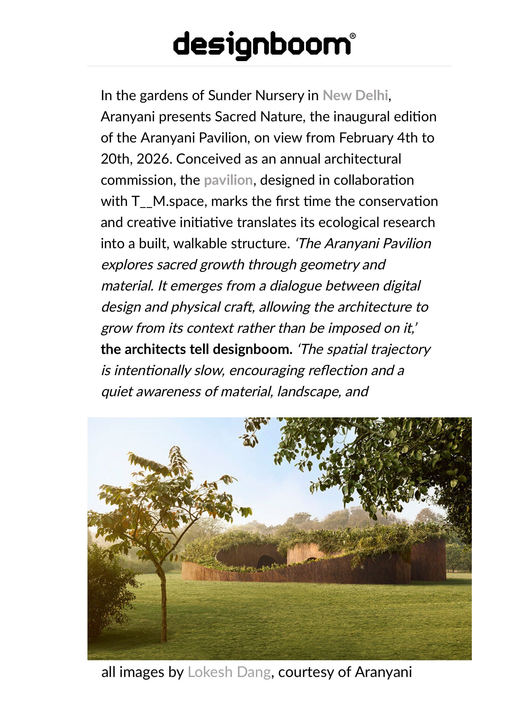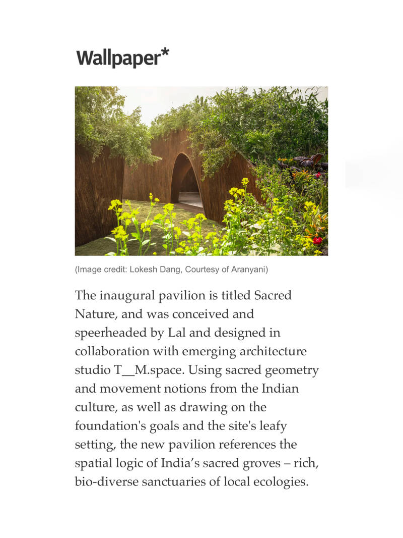 Operating between disciplines and continents, his recent projects include the globally recognized Aranyani Pavilion in New Delhi, and URNA, the Maltese Pavilion, which was awarded the Gold Medal at the London Design Biennale 2025. His practice aims to merge ecological thinking, cultural narrative, and contemporary technology into new spatial and design typologies. His work has been featured in publications including Condé Nast, the Financial Times, ELLE, ArchDaily, Designboom, and Dezeen, among others.